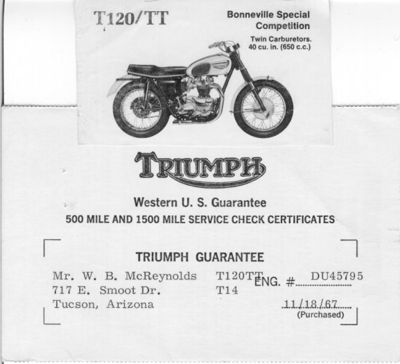 Most guys in the Navy had beautiful women for pin-ups, but I kept a picture of Triumph's new Competition 650 and 3 months after I got discharged I owned a brand new burgandy and gold Bonneville TT Special!! |